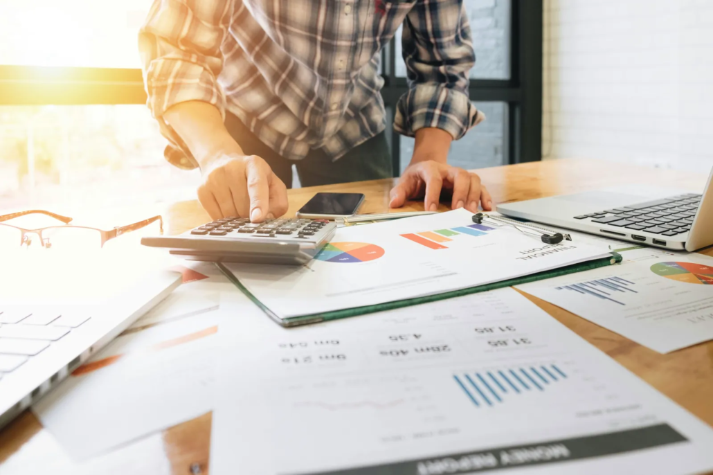 Calculator and financial reports representing careful analysis of tax incentives